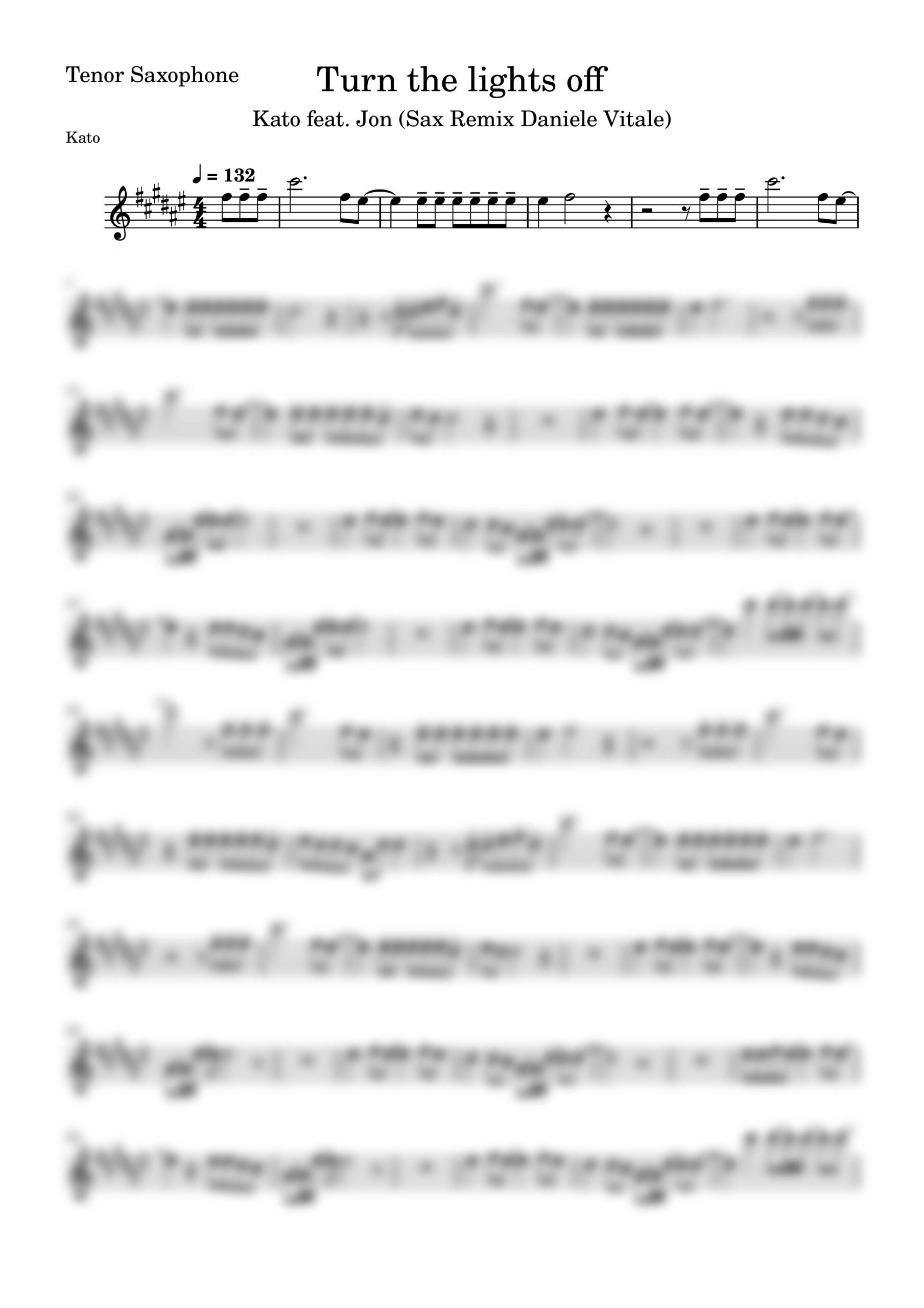 MitTurn The Lights Off – Kato feat. Jon Score Tenor bekommt das Tenorsaxophon genau die Bühne, die es verdient. Daniele Vitale hat den Song so arrangiert, dass Groove, Emotion und Showfaktor perfekt zusammenpassen. Die Melodie sitzt sofort im Ohr, der Beat schiebt nach vorne, und das Sax übernimmt die Rolle der Stimme – direkt, sexy und mit ordentlich Attitüde.